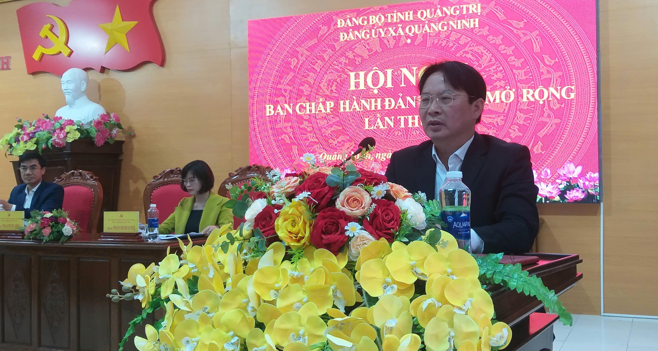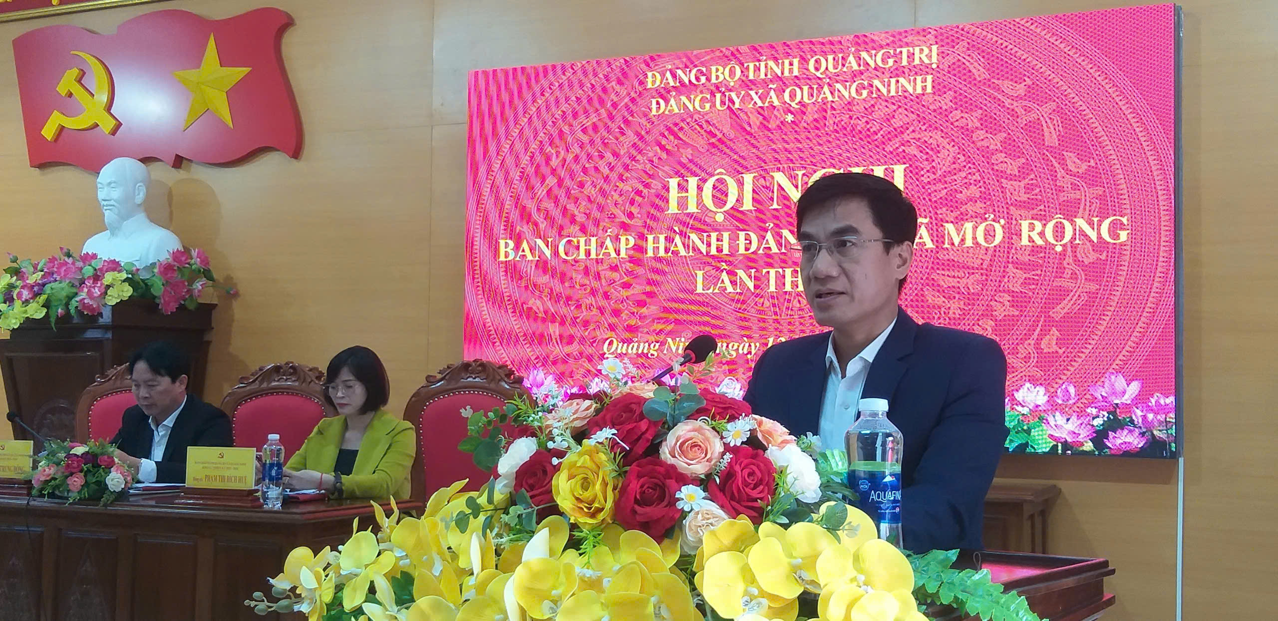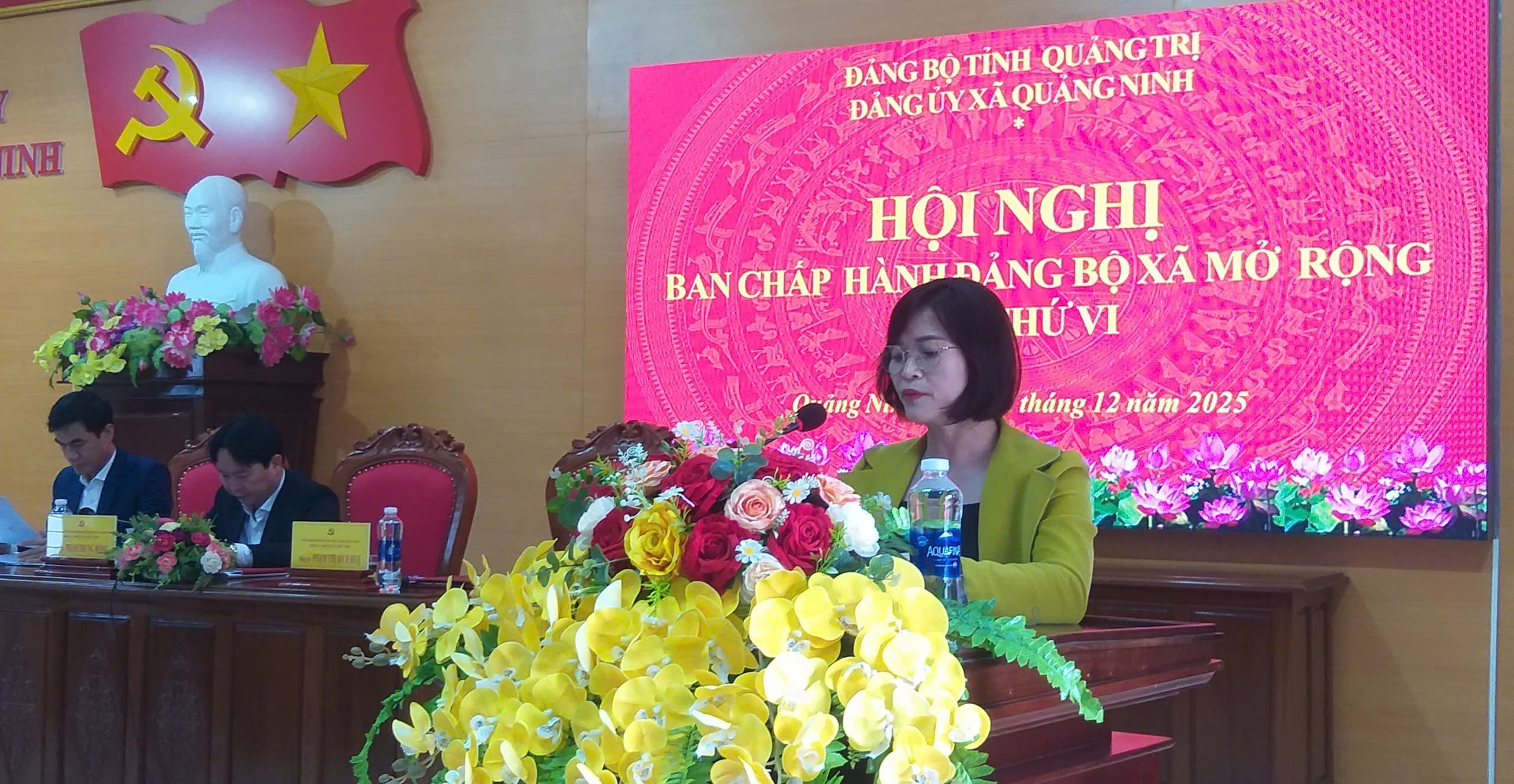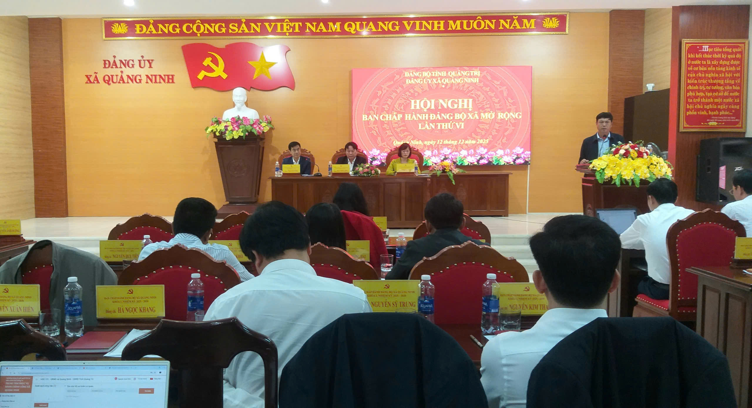 Chiều 12/12, Đảng bộ xã Quảng Ninh tổ chức hội nghị Ban Chấp hành Đảng bộ xã mở rộng lần thứ VI. Đồng chí Phạm Trung Đông, Bí thư Đảng ủy, Chủ tịch HĐND xã; đồng chí Phạm Thị Bích Huệ, Phó Bí thư Thường trực Đảng ủy; đồng chí Trần Xuân Tình, Phó Bí thư Đảng ủy, Chủ tịch UBND xã chủ trì hội nghị.