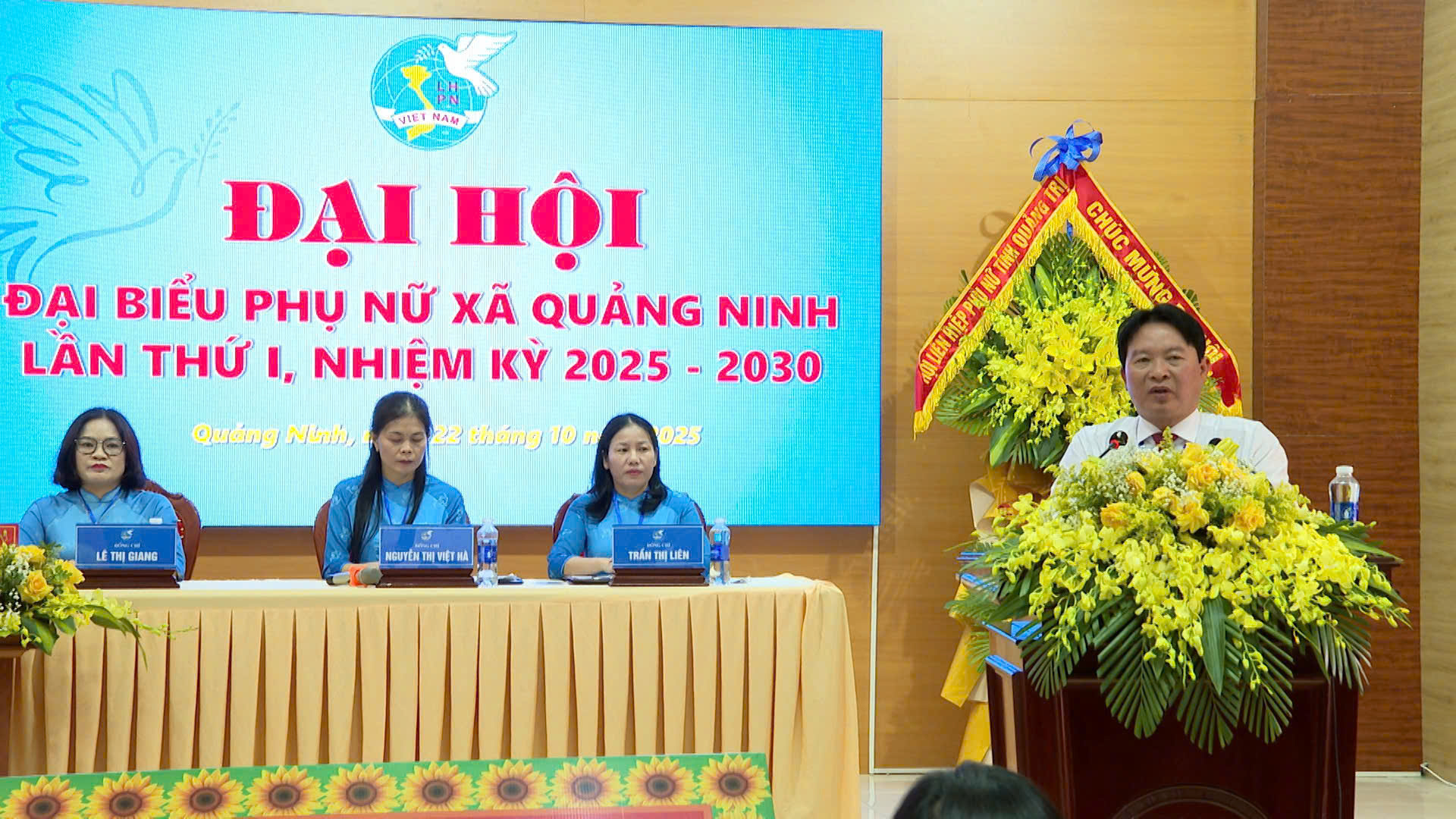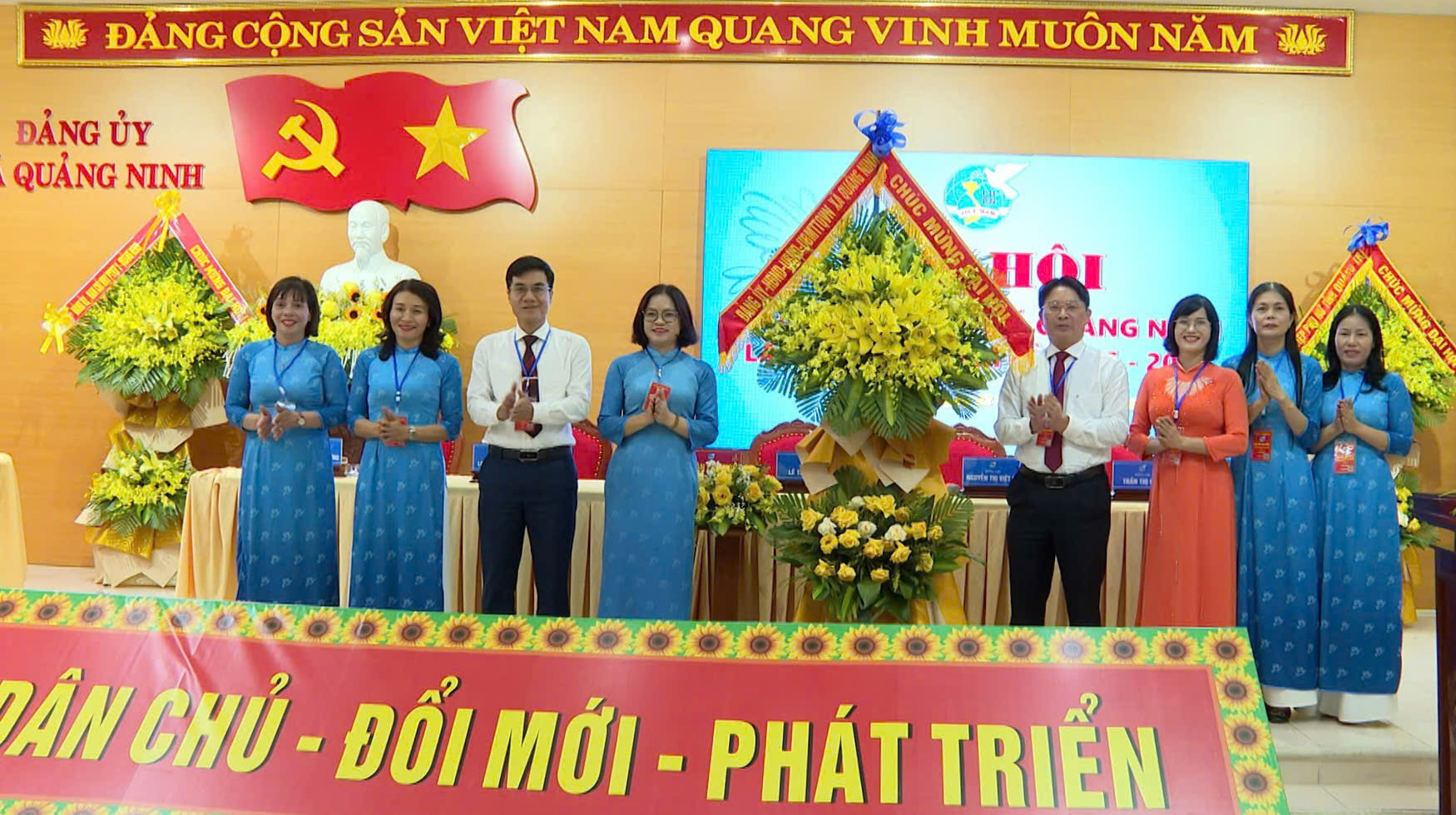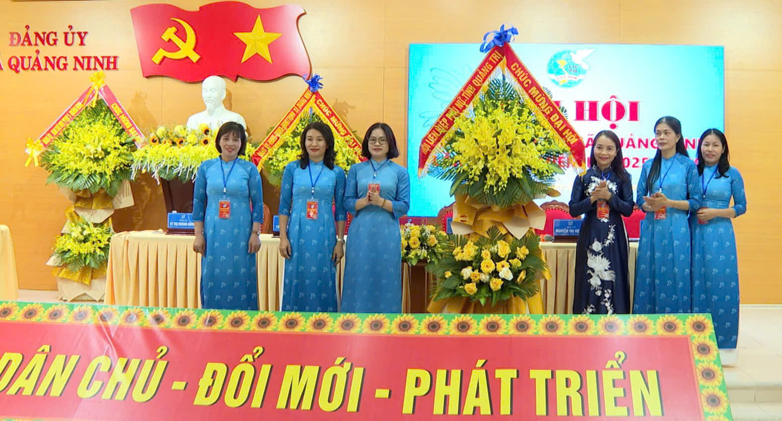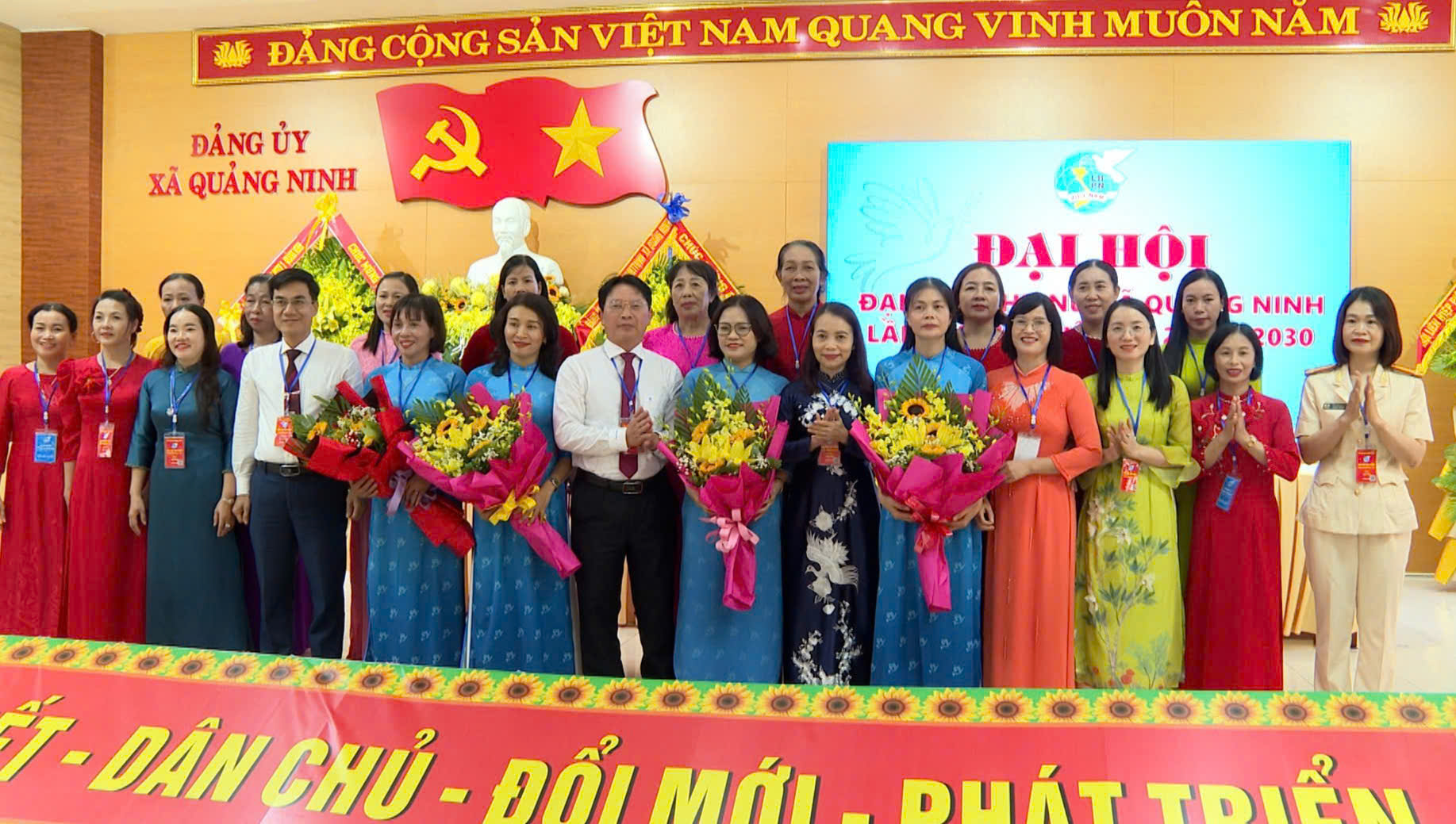 Lãnh đạo Hội LHPN tỉnh và xã Quảng Ninh tặng hoa chúc mừng BCH nhiệm kỳ mới
