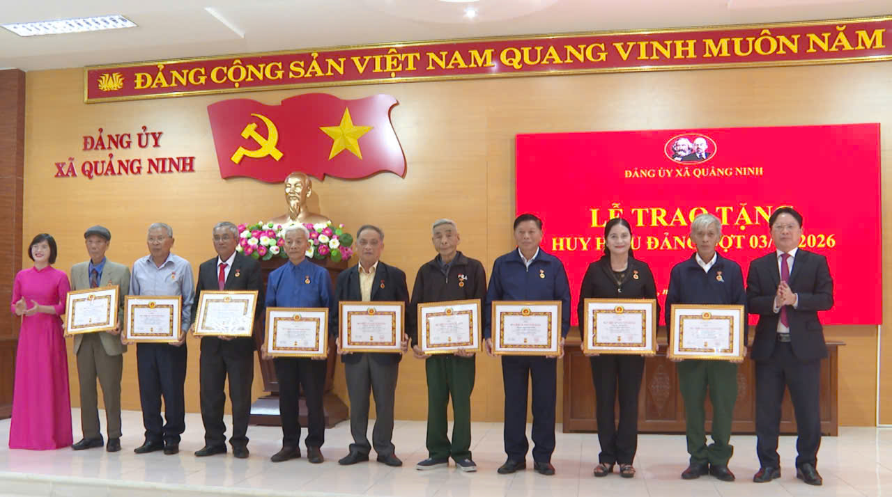 Sáng 30/1/2026, Đảng bộ xã Quảng Ninh tổ chức lễ trao tặng Huy hiệu Đảng đợt 3/2 cho các đảng viên đủ điều kiện.