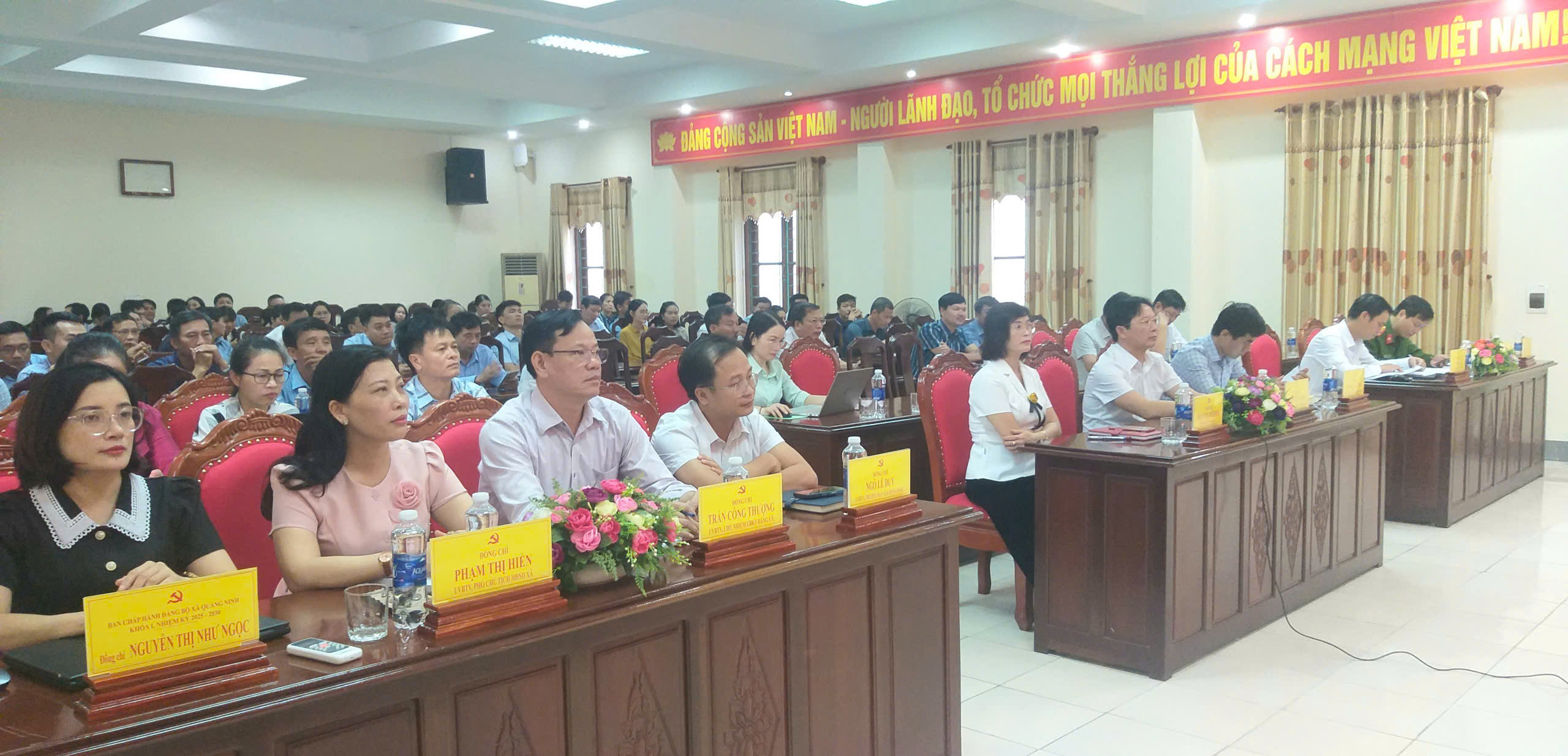 Các đại biểu tham dự hội nghị tại điểm cầu Đảng ủy xã Quảng Ninh