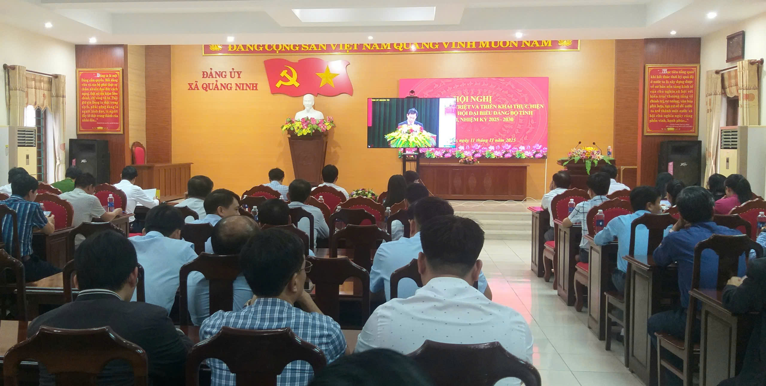 Tham gia hội nghị tại điểm cầu Đảng ủy xã Quảng Ninh có đồng chí Phạm Trung Đông, Bí thư Đảng ủy, Chủ tịch HĐND xã; đồng chí Phạm Thị Bích Huệ, Phó Bí thư Thường trực Đảng ủy; đồng chí Trần Xuân Tình, Phó Bí thư Đảng ủy, Chủ tịch UBND xã; các đồng chí trong Ban Thường vụ, Ban Chấp hành Đảng bộ xã; lãnh đạo các ban ngành, đoàn thể cấp xã và toàn thể đảng viên.