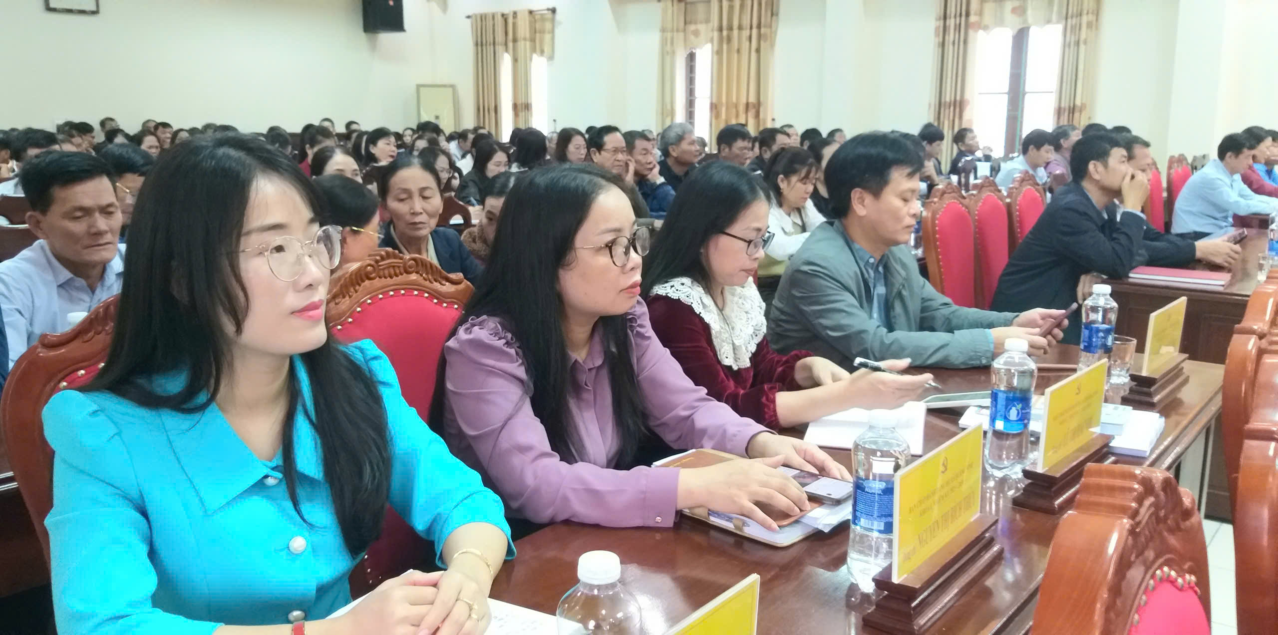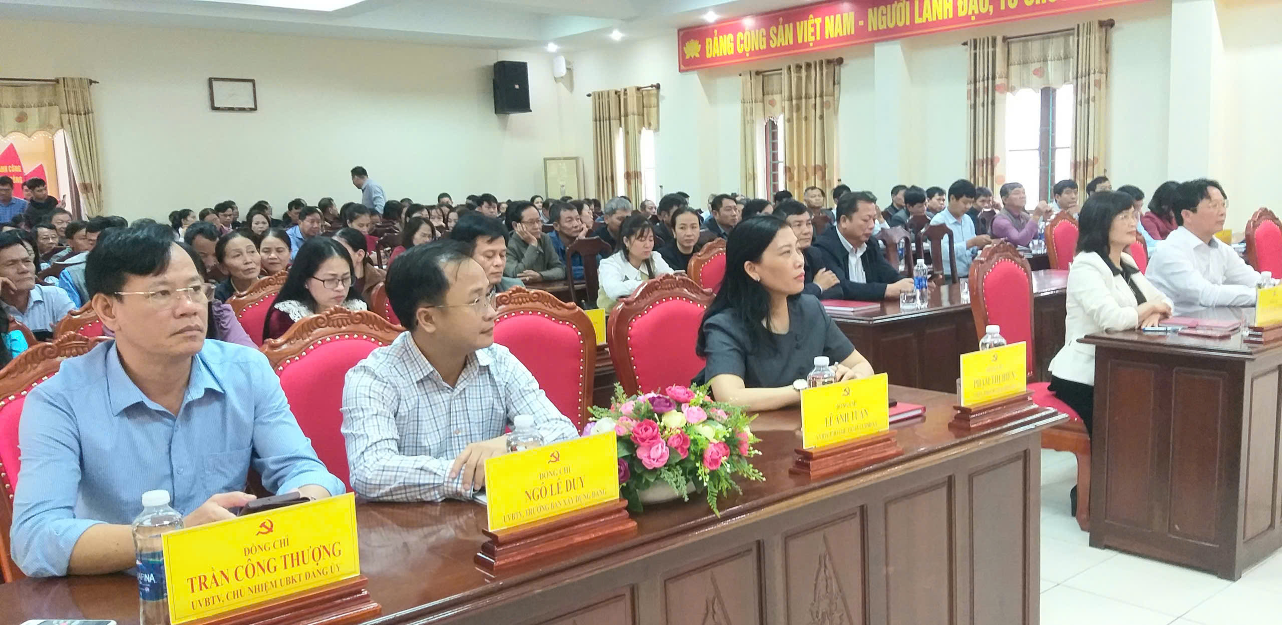 Các đại biểu xã Quảng Ninh tham dự hội nghị trực tuyến