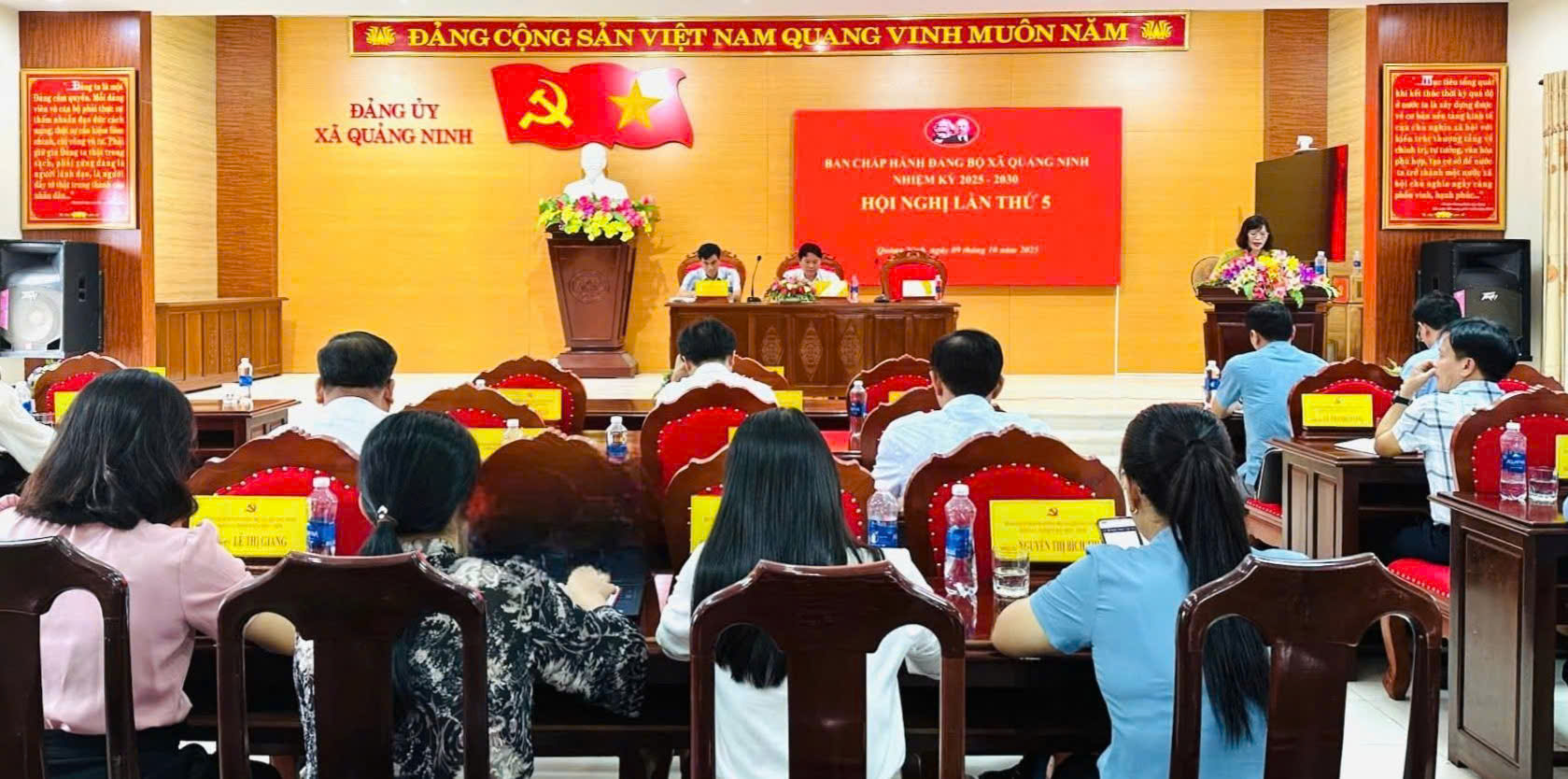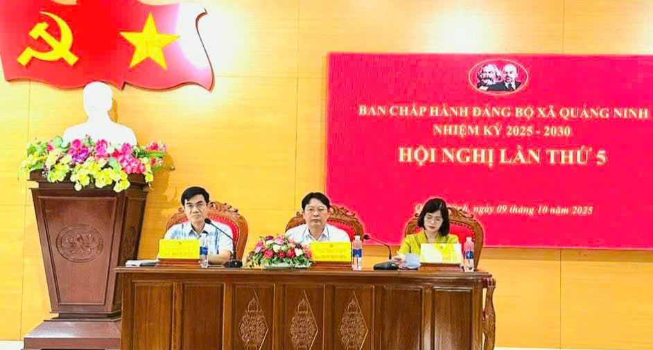 Chiều 9/10, Đảng bộ xã Quảng Ninh tổ chức hội nghị Ban chấp hành lần thứ 5, nhiệm kỳ 2025-2030 nhằm đánh giá tình hình kinh tế, xã hội; công tác xây dựng Đảng quý III, triển khai nhiệm vụ quý IV năm 2025 và xem xét, thông qua một số nội dung quan trọng.