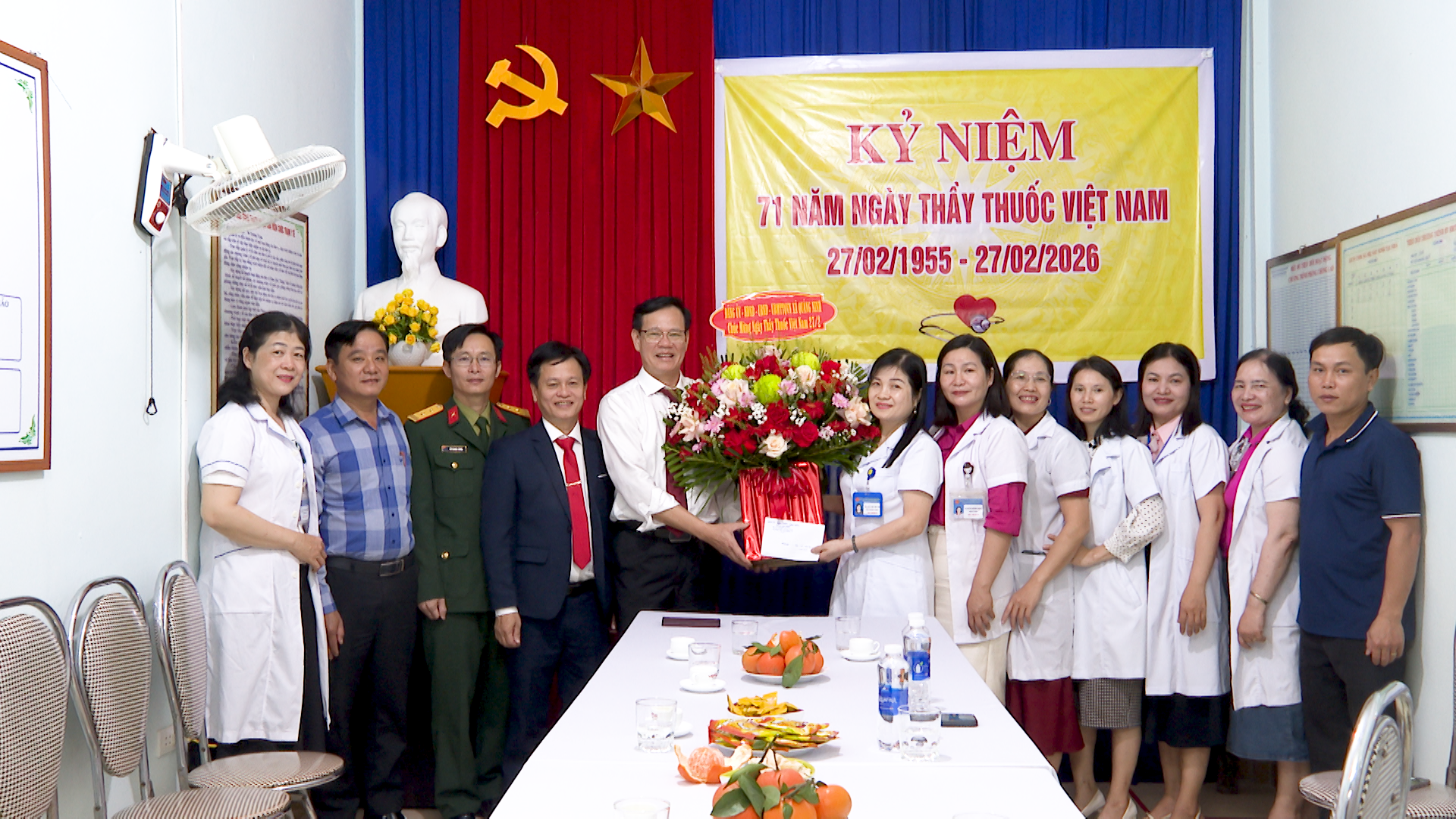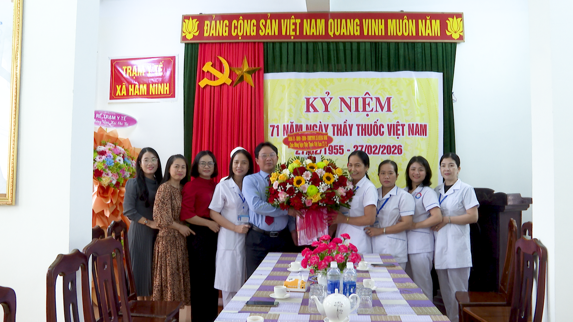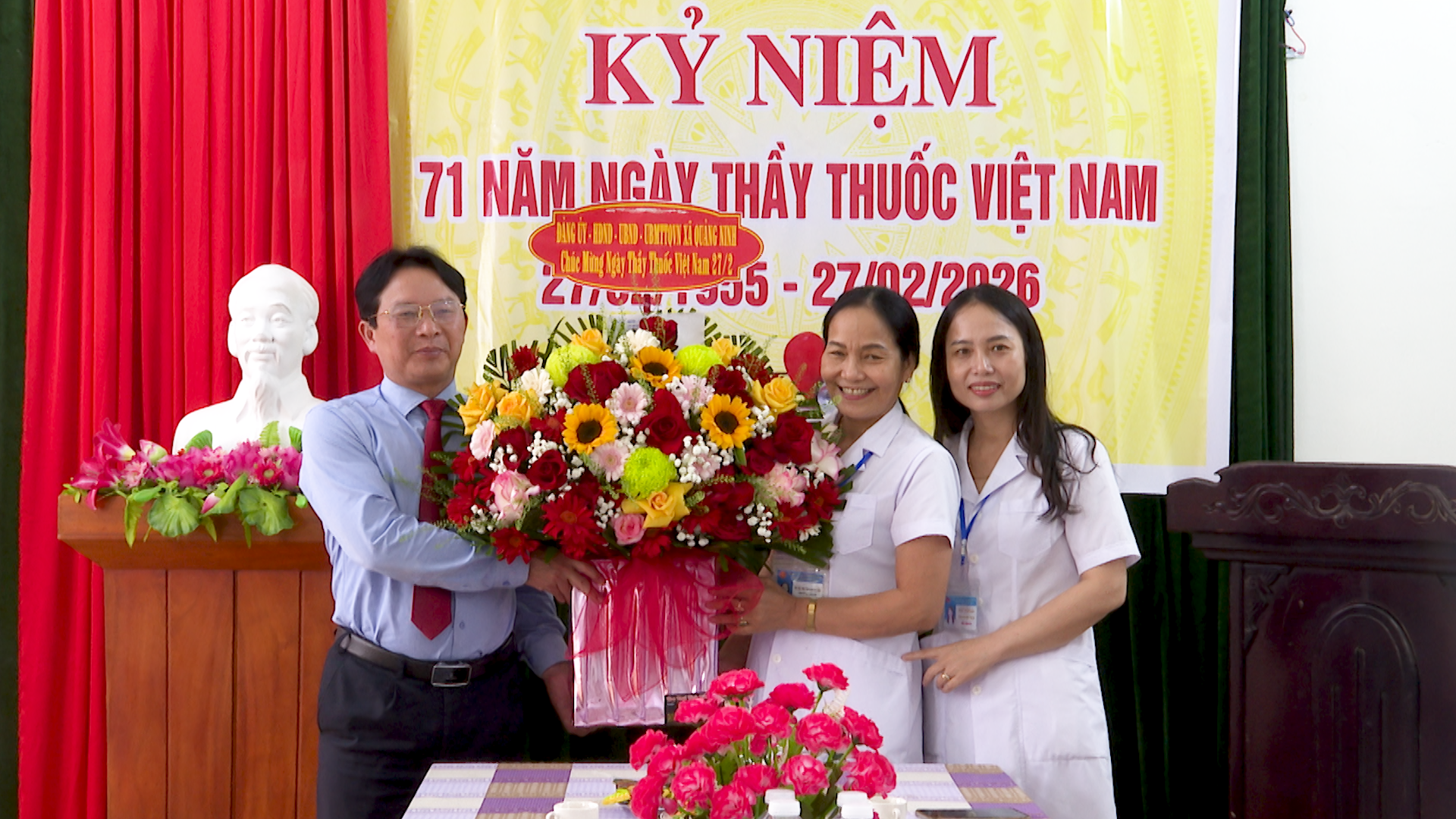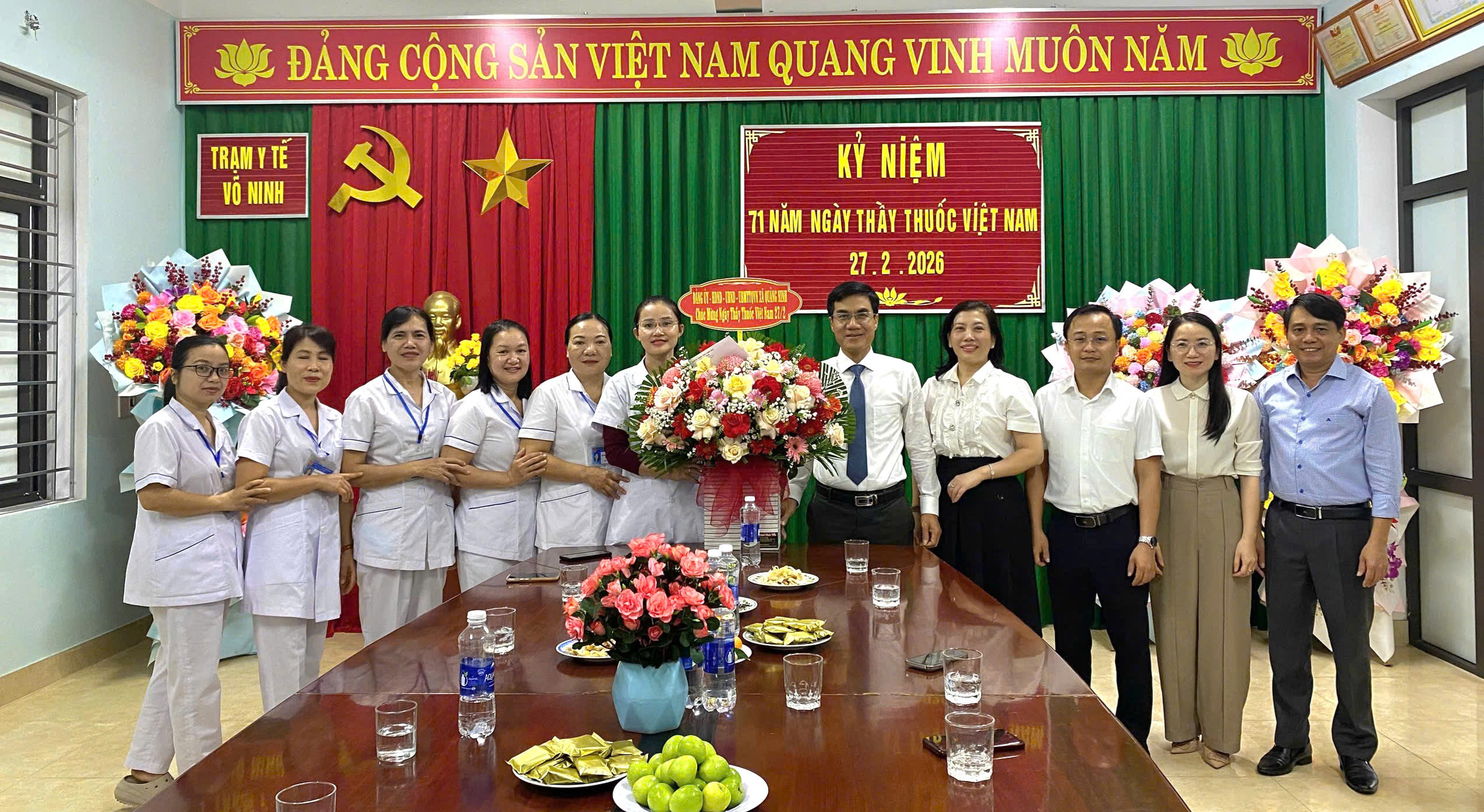 Lãnh đạo xã Quảng Ninh cũng đã tặng hoa, chúc mừng đội ngũ cán bộ, y bác sỹ các Trạm y tế nhân Ngày Thầy thuốc Việt Nam 27/2.