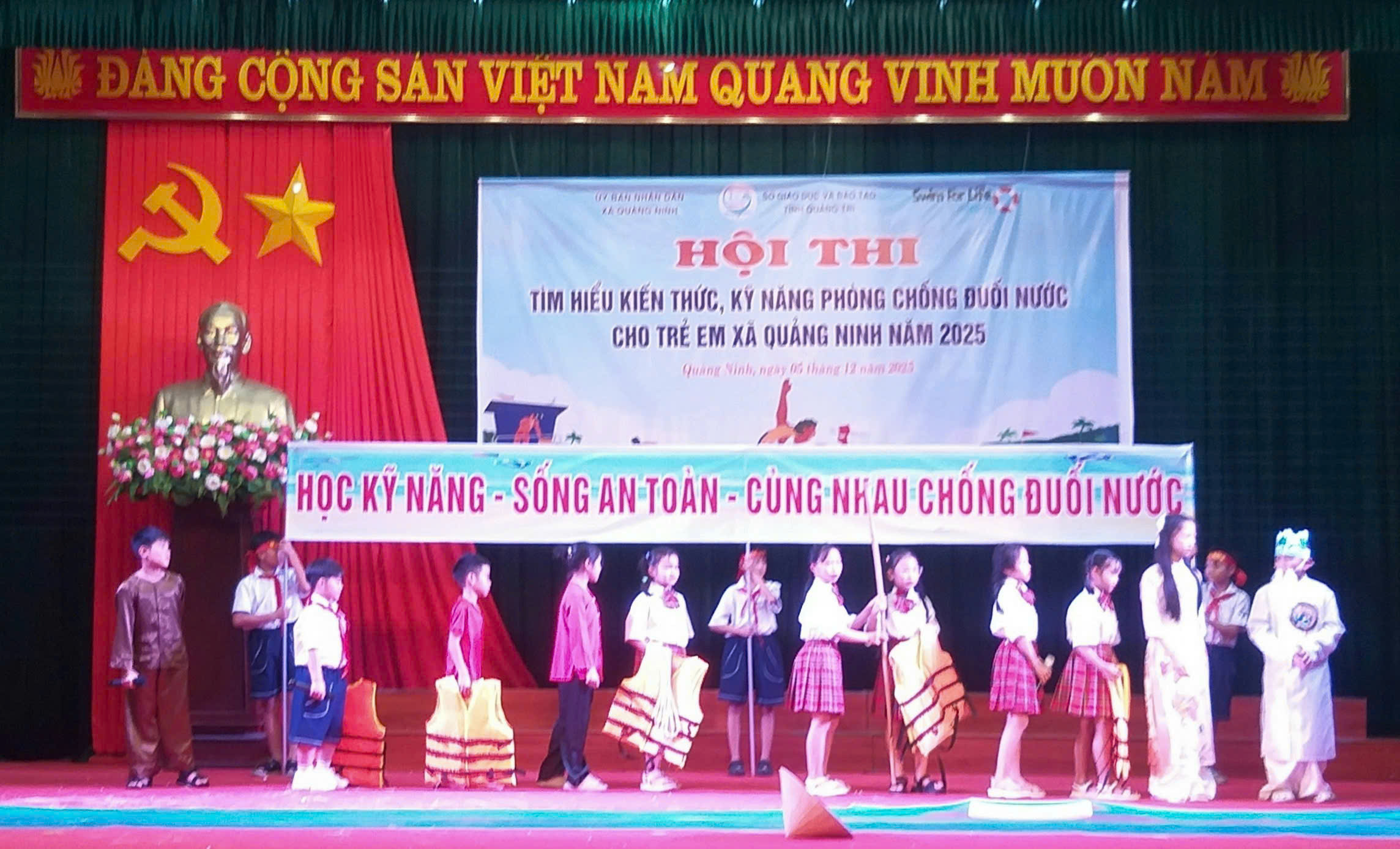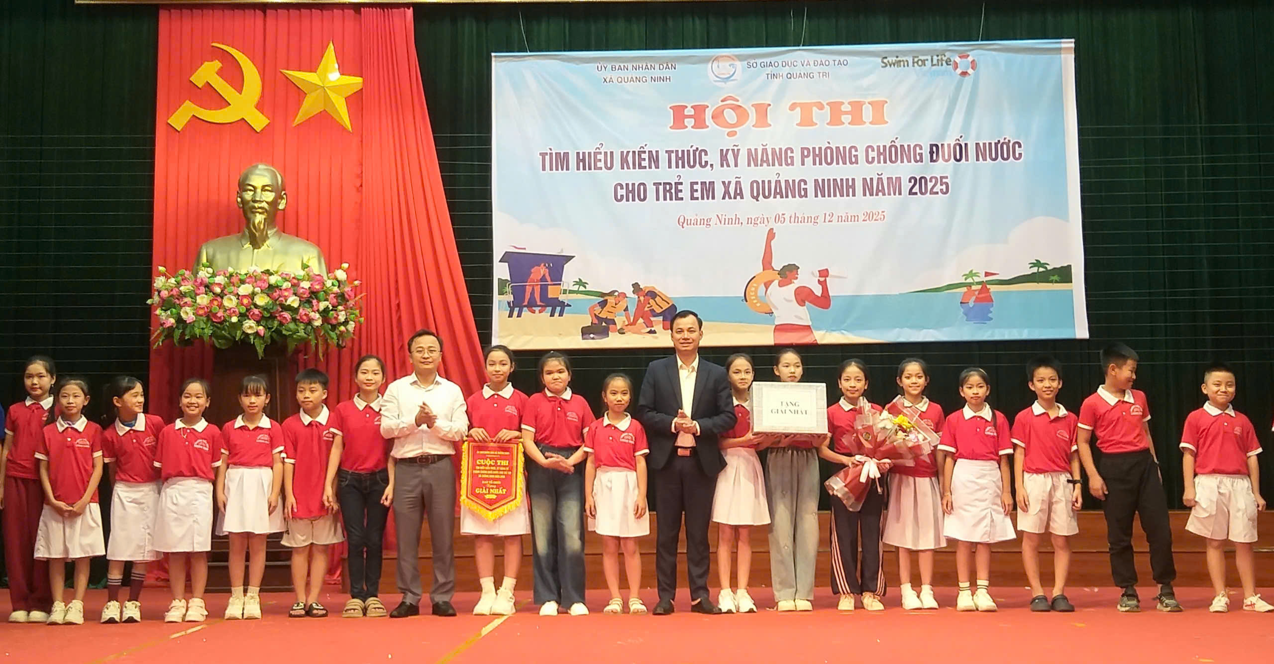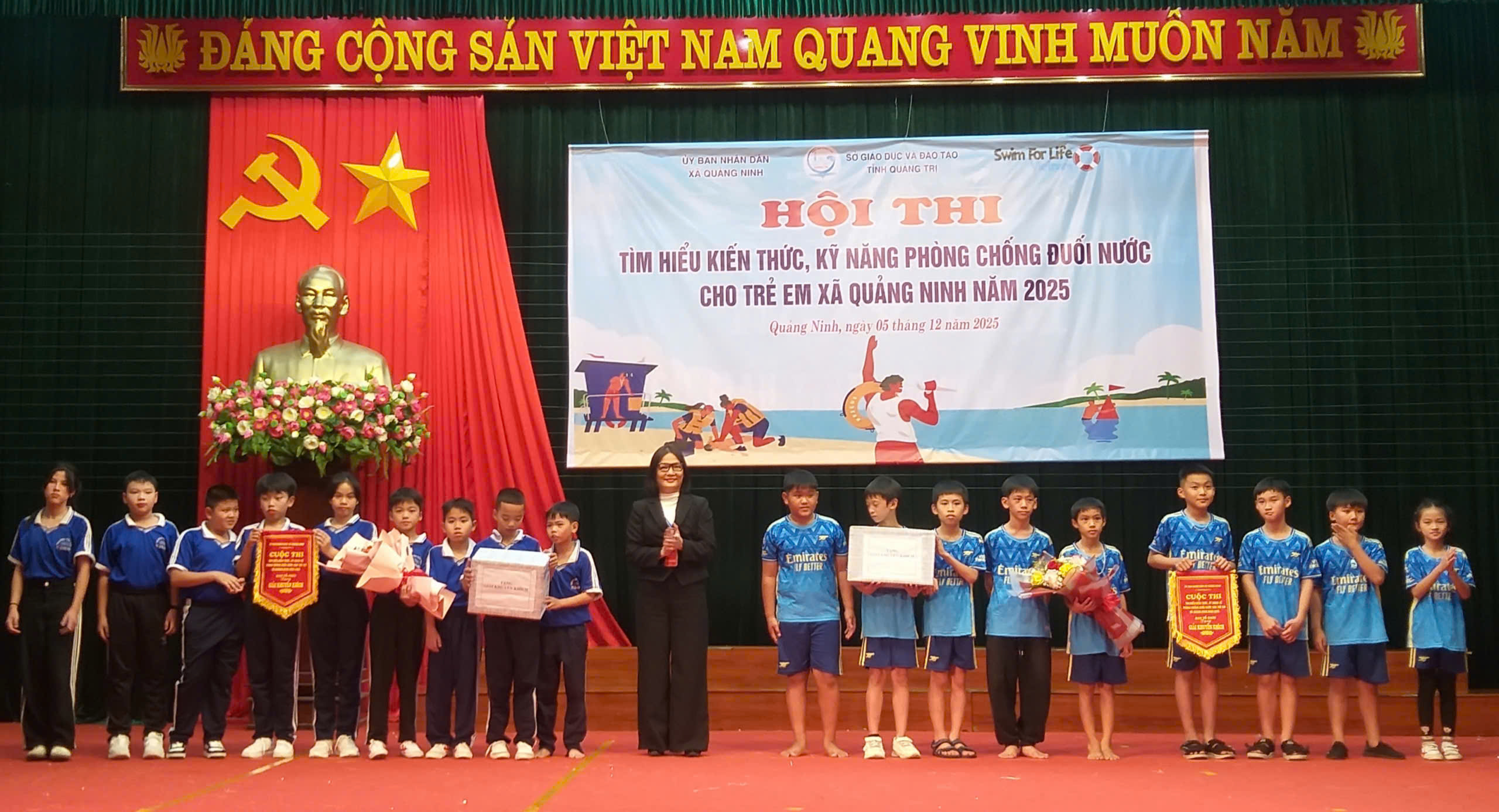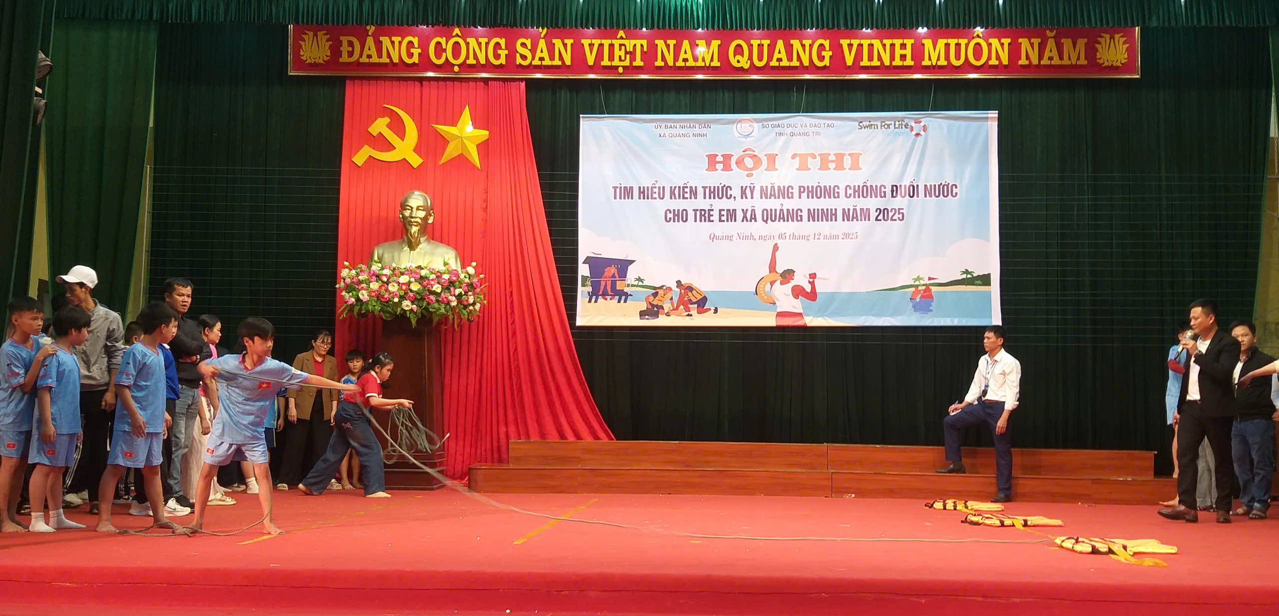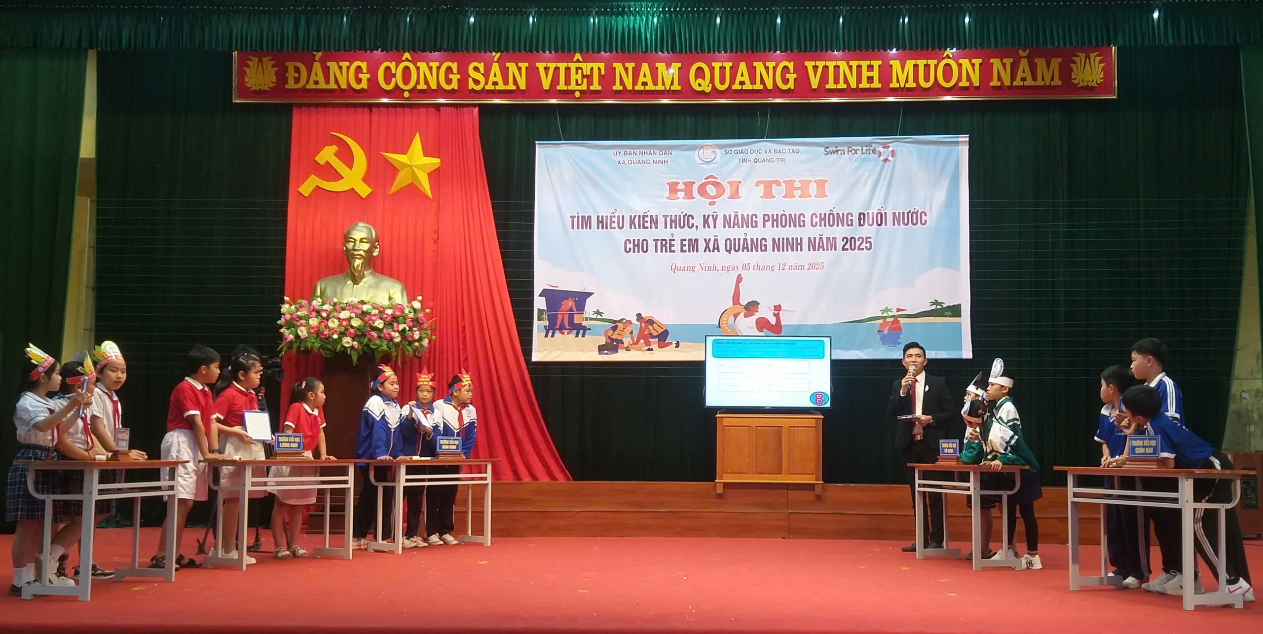 Chiều 5/12, UBND xã Quảng Ninh phối hợp với Ban Quản lý Dự án “Phòng, chống đuối nước trẻ em tỉnh Quảng Trị” và Dự án Swim For Life tổ chức hội thi tìm hiểu kiến thức, kỹ năng phòng, chống đuối nước trẻ em năm 2025.