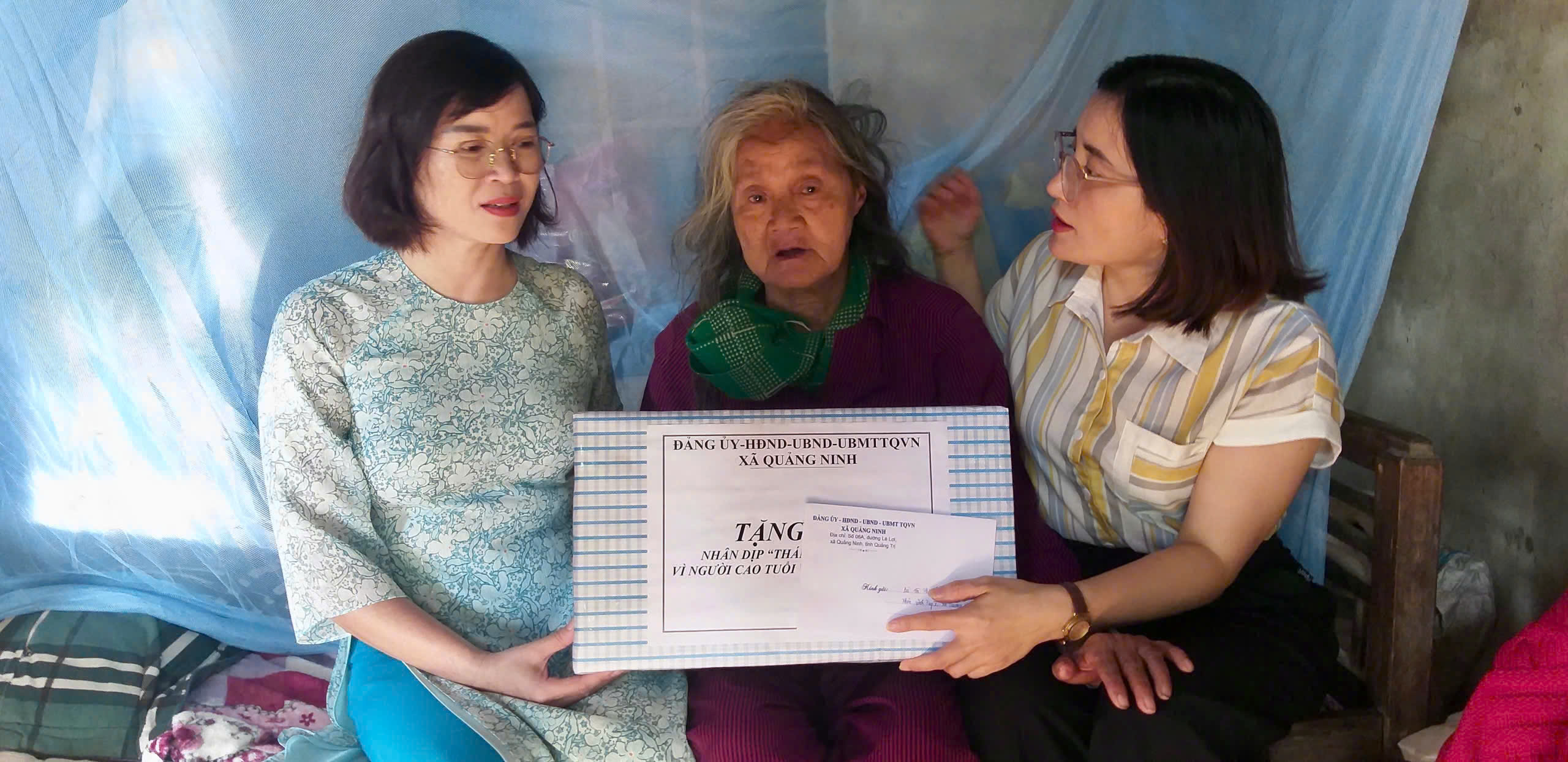 Lãnh đạo xã Quảng Ninh cũng đề nghị cấp ủy chi bộ, Ban công tác mặt trận các thôn và mỗi gia đình cần quan tâm, chăm sóc chu đáo hơn nữa đối với người cao tuổi già yếu, ốm đau, trẻ em có hoàn cảnh đặc biệt khó khăn, bảo đảm có cuộc sống đầy đủ về vật chất, vui vẻ về tinh thần.