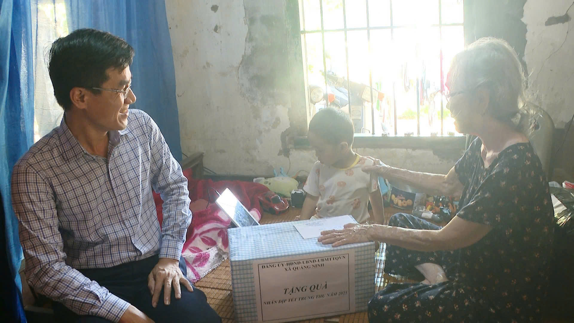 Nhân dịp “Tháng hành động vì người cao tuổi Việt Nam” và Tết Trung thu năm 2025, ngày 01/10, đồng chí Phạm Trung Đông, Bí thư Đảng ủy, Chủ tịch HĐND xã; đồng chí Phạm Thị Bích Huệ, Phó Bí thư Thường trực Đảng ủy; đồng chí Trần Xuân Tình, Phó Bí thư Đảng ủy, Chủ tịch UBND xã và các đồng chí trong Ban Thường vụ Đảng ủy, HĐND, UBND, UBMT TQ Việt Nam xã; lãnh đạo một số ban ngành, đoàn thể xã Quảng Ninh tổ chức thành nhiều đoàn đến thăm, tặng quà cho người cao tuổi và trẻ em có hoàn cảnh đặc biệt khó khăn trên địa bàn.