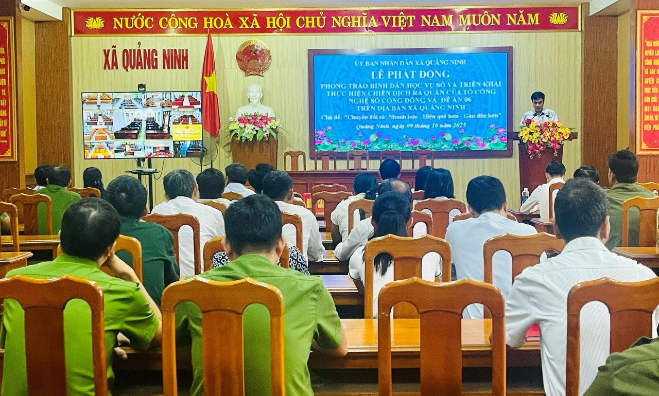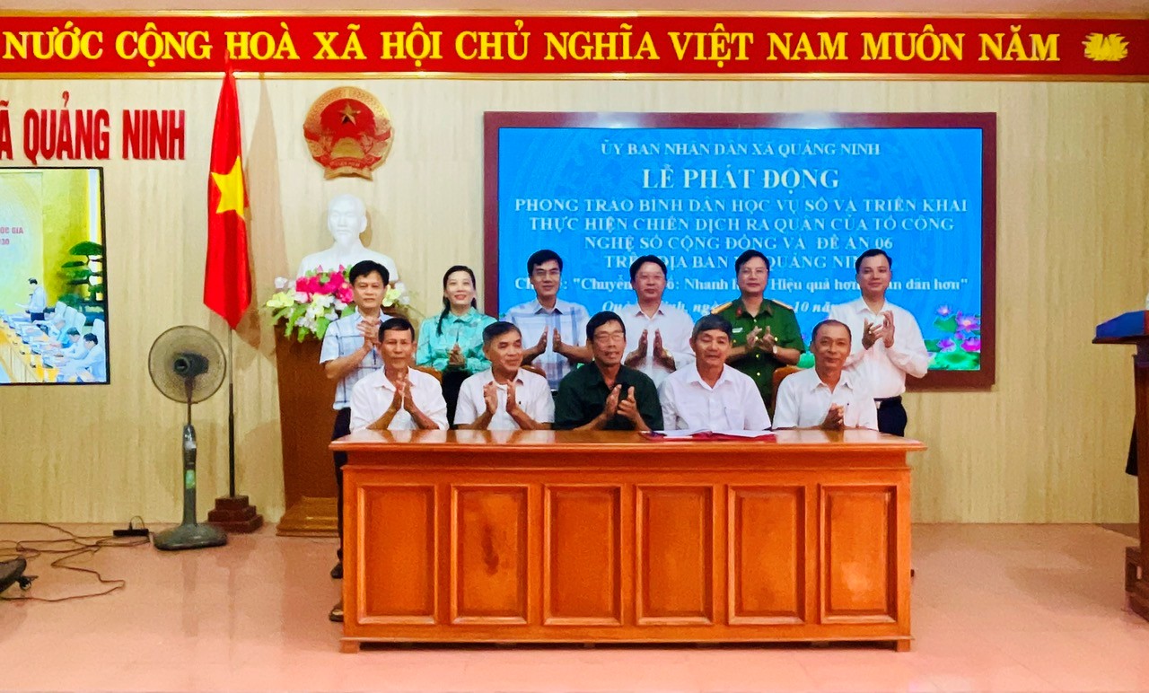 Sáng 09/10, Ủy ban nhân dân xã Quảng Ninh tổ chức Lễ phát động phong trào “Bình dân học vụ số” và ra quân triển khai hoạt động của Tổ công nghệ số cộng đồng, thực hiện Đề án 06.