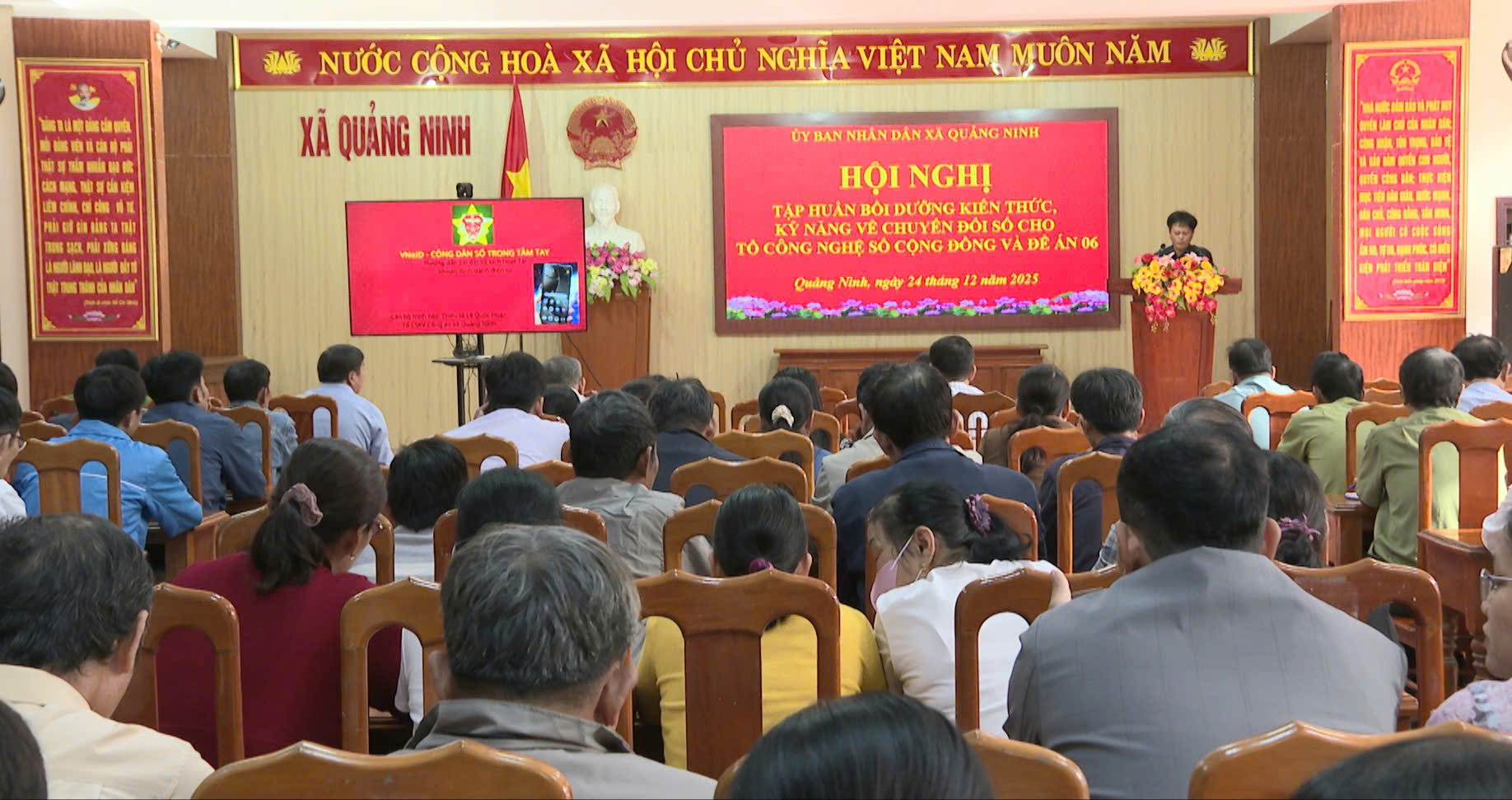Ngày 24/12/2025, UBND xã Quảng Ninh tổ chức tập huấn, bồi dưỡng kiến thức, kỹ năng về chuyển đổi số cho Tổ trưởng, Tổ phó và các thành viên Tổ công nghệ số cộng đồng và Đề án 06 các thôn trên địa bàn xã.
