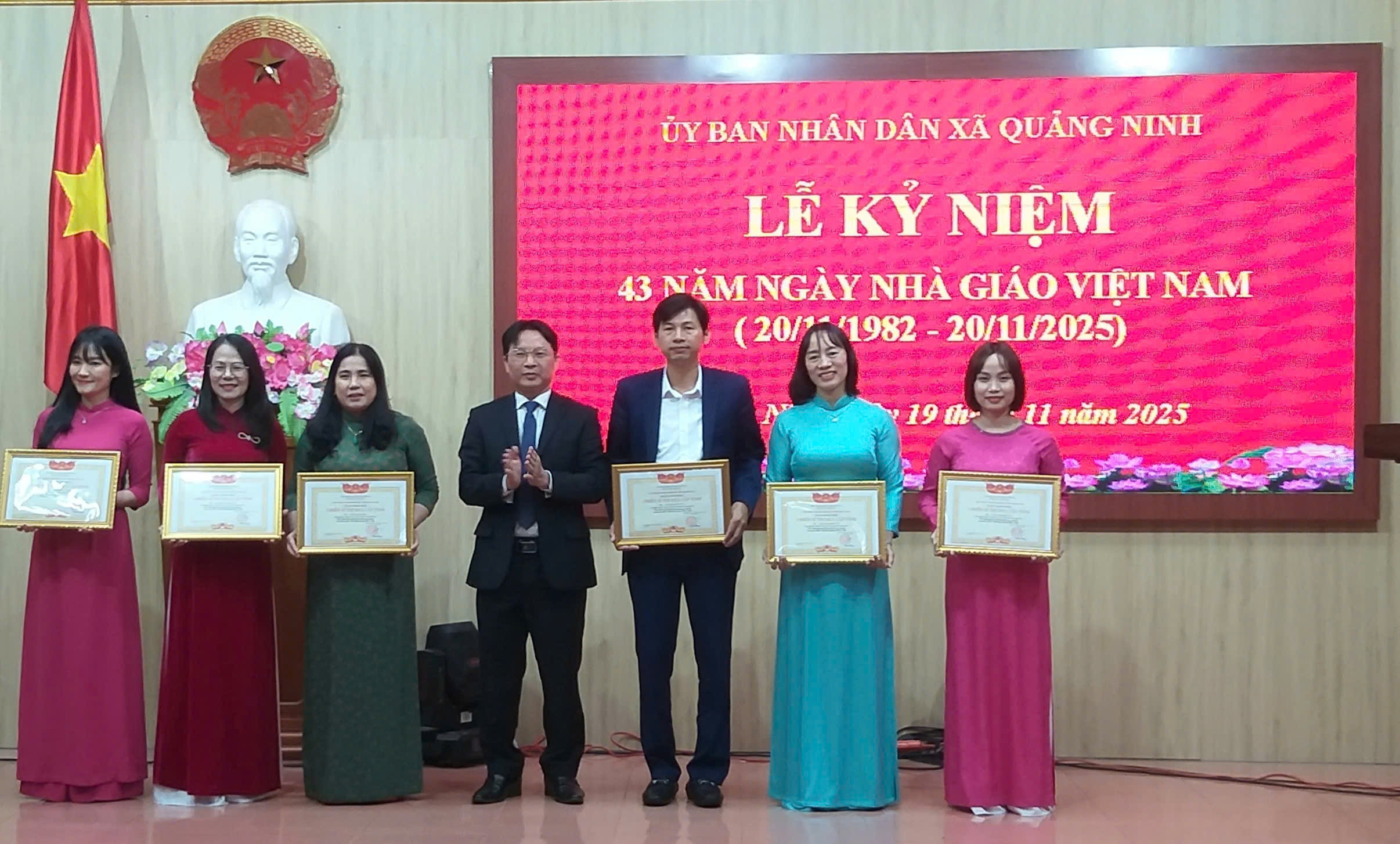 Tại buổi lễ, thừa ủy quyền của Chủ tịch UBND tỉnh, lãnh đạo xã Quảng Ninh đã trao tặng danh hiệu Chiến sỹ thi đua cấp tỉnh cho 6 cán bộ, giáo viên; 5 trường học được tặng danh hiệu Tập thể lao động xuất sắc; 7 cá nhân và 1 tập thể được Chủ tịch UBND tỉnh tặng bằng khen.