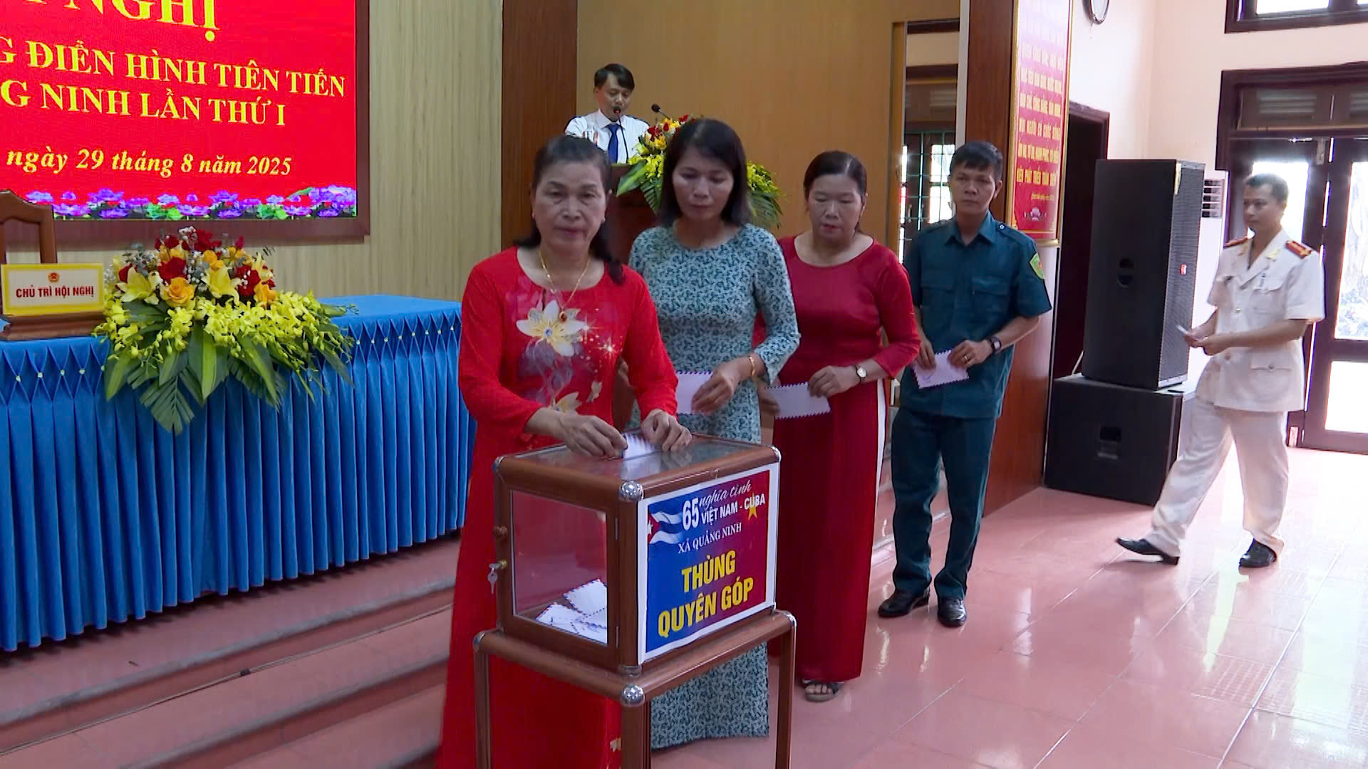 Nhân dịp kỷ niệm 65 năm thiết lập quan hệ ngoại giao Việt Nam-Cuba (2/12/1960-2/12/2025), thời gian qua, UBMT TQ Việt Nam xã Quảng Ninh đã kêu gọi, tuyên truyền, vận động cán bộ và Nhân dân trên địa bàn xã tích cực quyên góp ủng hộ Nhân dân Cuba.