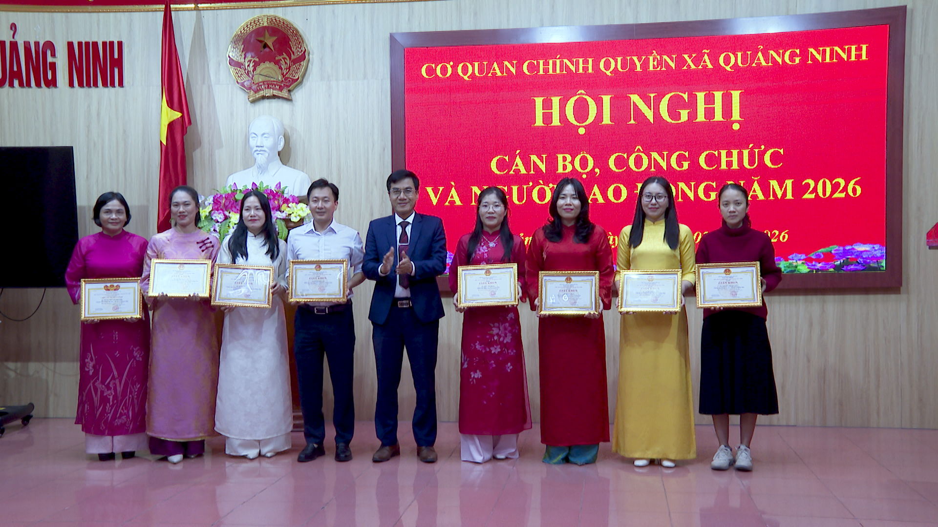 Phát huy những kết quả đạt được, năm 2026, Cơ quan Chính quyền xã Quảng Ninh phấn đấu 100% phòng, đơn vị chuyên môn đạt danh hiệu Tập thể lao động tiên tiến, trong đó có 20% đạt danh hiệu Tập thể lao động xuất sắc; 100% cán bộ, công chức đạt lao động tiên tiến, trong đó có 20% đạt danh hiệu chiến sĩ thi đua cơ sở.